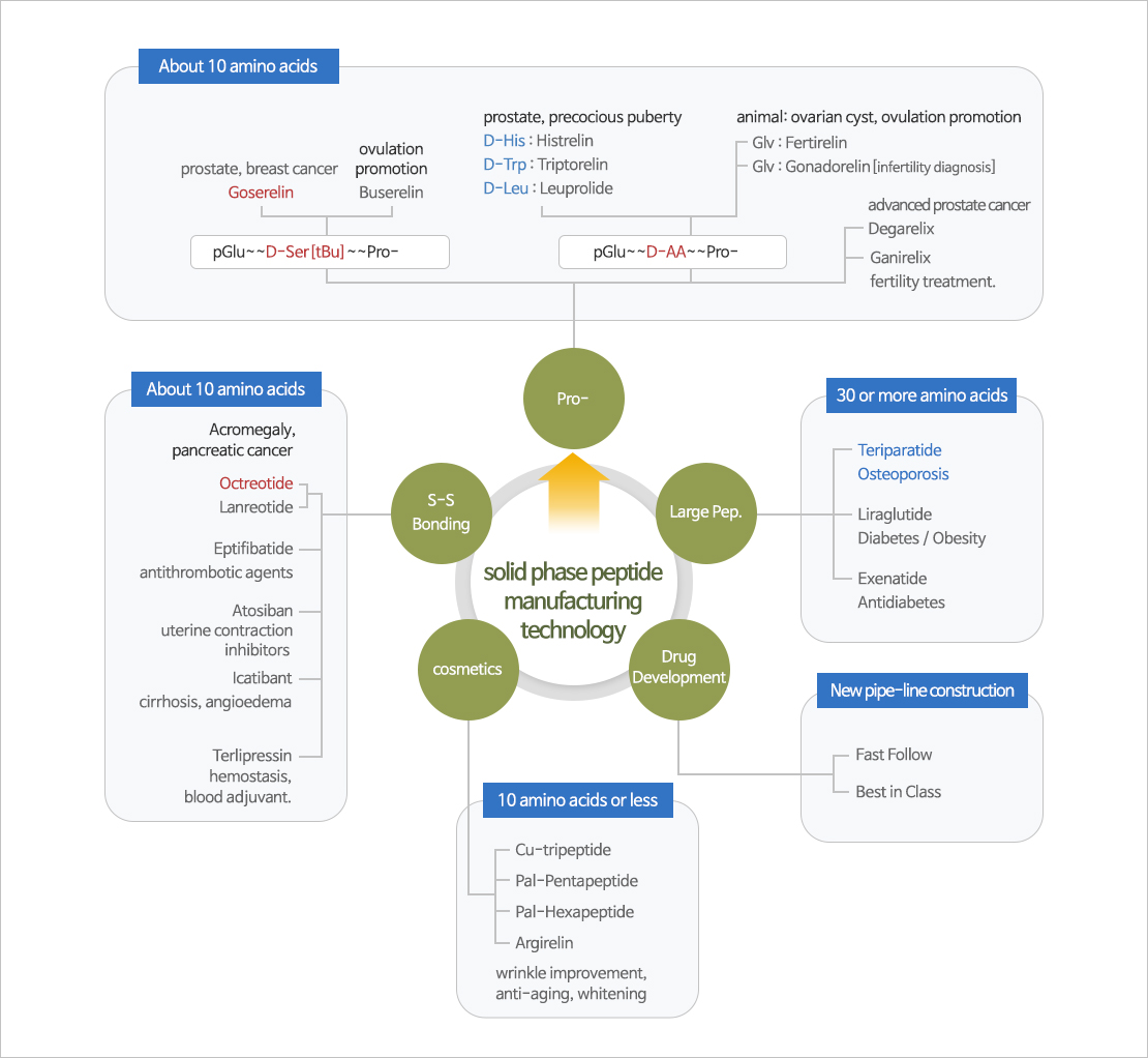Manufacturing Process was completed through SPPS(solid phase peptide synthesis) and Prep-HPLC/Resin purification technology about Goserelin and Octreotide.