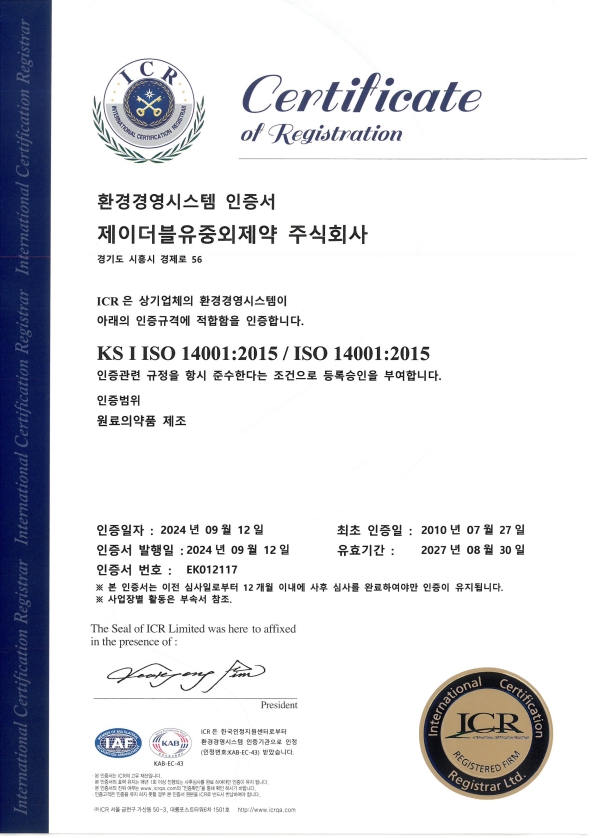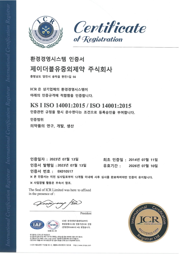 JW중외제약은 환경에 영향을 미치는 잠재적 요소들을 지속적으로 점검하고 있습니다. 환경관리에 대한 사회적·법적 책임을 공감하고 이를 구현하기 위해 국제 표준 환경 경영 인증인 ISO14001을 획득했습니다. 이를 바탕으로 친환경 경영 확대를 위해 지속적으로 노력하고 있습니다.