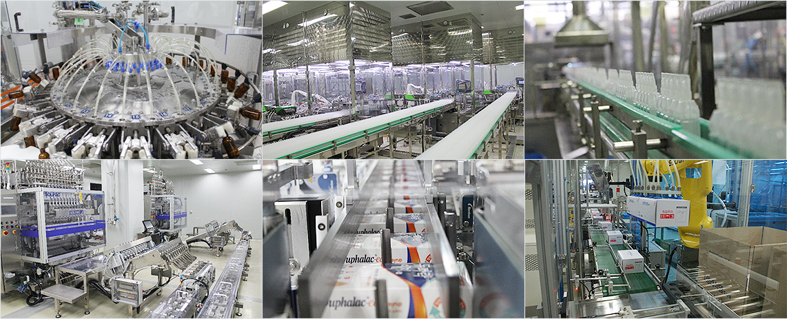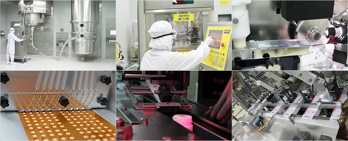 설비에 이르는 전 과정이 국제 GMP 기준으로 설계되었으며 제품의 전 과정이 완벽한 자동화 시스템에 의해 생산됩니다.