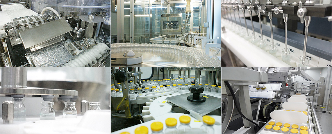 무균주사제생산라인은 밀폐형 생산방식(Closed System)을 채택하여 제조공정 중 이물혼입이나 교차오염 등의 위험성을 원천적으로 차단하고 있으며 최적의 작업장 상태에서 제품이